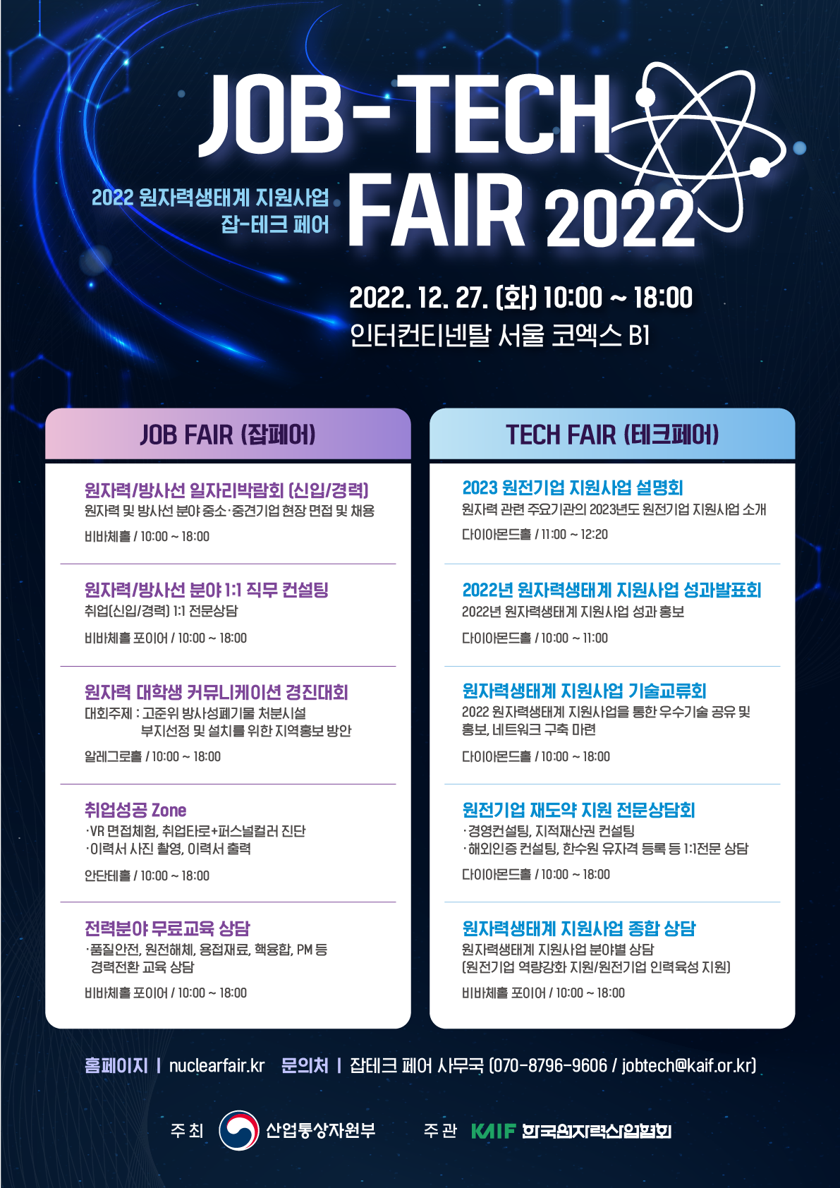 2022 잡-테크페어 프로그램 안내 (12. 27. 화 / 인터컨티넨탈 서울 코엑스) 페이지 정보 작성자 최고관리자 작성일22-12-20 09:07 조회827회 댓글0건 관련링크 본문 dd 댓글목록 등록된 댓글이 없습니다. 목록